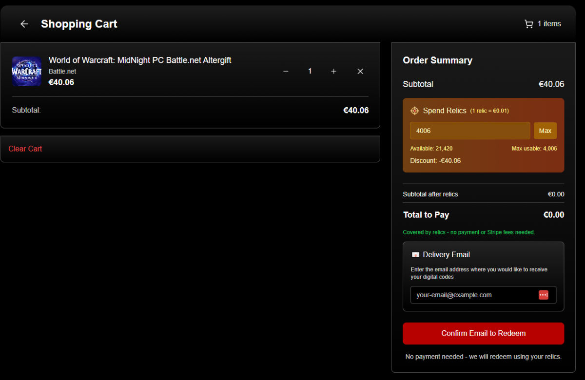 You'll get a confirmation email. - It's also really easy to send stuff to friends through here, hence why it's called GIFT forge 🙂 Just enter their email instead, half the reason we made it is because we give away so many Battlenet / Steam gift cards in the Crimson Loot Carnival and this makes it 100x easier to do that.