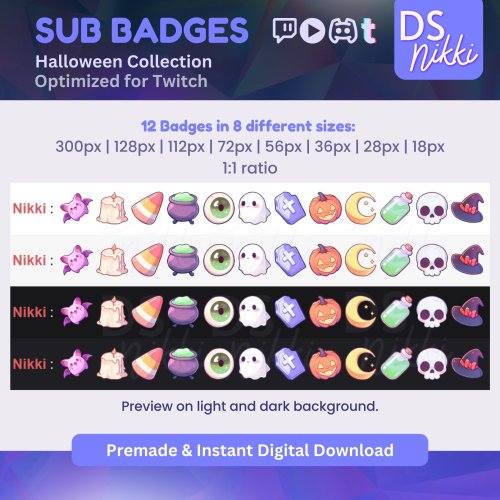๐Embrace the magic of Halloween with this charming spooky aesthetic Halloween badge set! Use on your streams across Twitch.tv, YouTube, Discord, and TikTok that will add a touch of eerie fun to your channel.๐ป