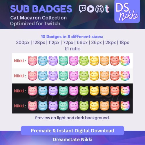 ๐บCat Macaron badge set! Use on your streams across Twitch.tv, YouTube, Discord, and TikTok that will add a touch of cuteness to your channel.๐บ๐